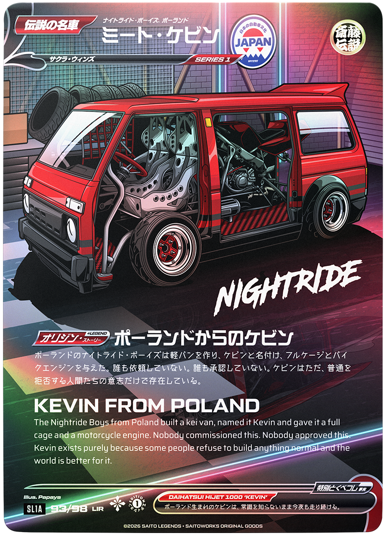 Saito Legends is a new kind of trading card experience designed by real car enthusiasts dedicated to the automotive world, the machines, brands, and people that shape car culture.